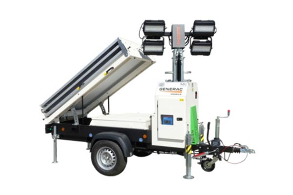 4×100 W high-efficiency New G4 LED floodlights designed by Generac MobileĀ® Special version with adjustable light power output from 25% to 100%.